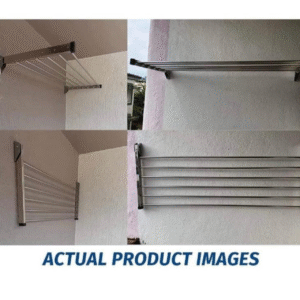 Description: Wall-mounted foldable drying stand with 5 stainless steel rods. Compact, durable, and perfect for balconies and bathrooms.